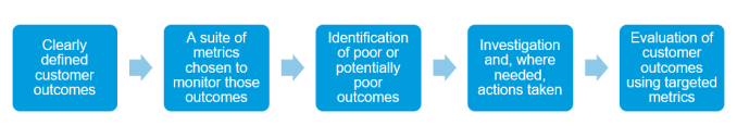 The FCA highlighted that the below causal chain allowed firms to maintain a clear and comprehensive approach to monitoring customer outcomes.